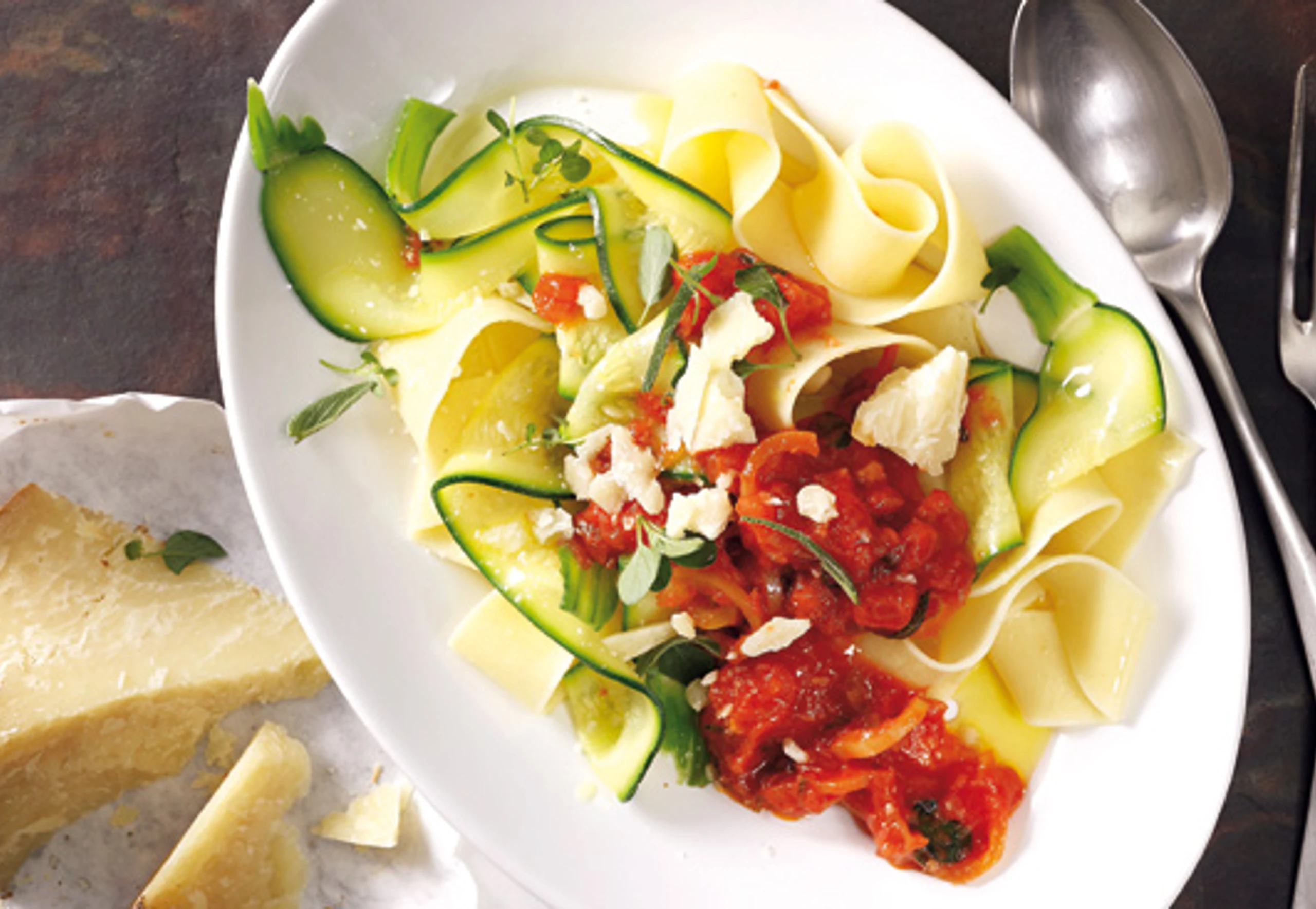 Zucchini-Pappardelle mit Paradeissauce