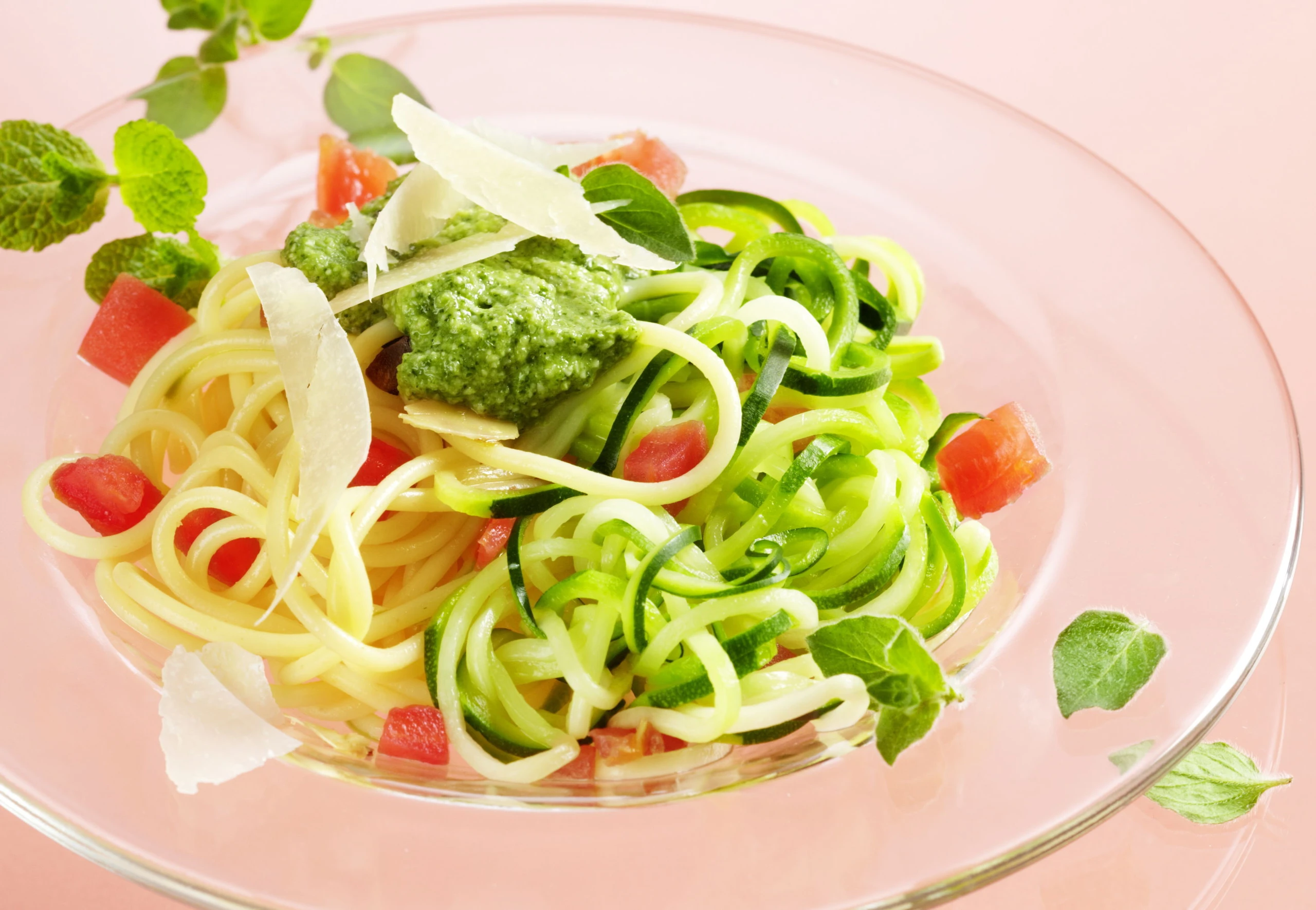 Zucchini-Spaghetti mit Kräuter-Pesto