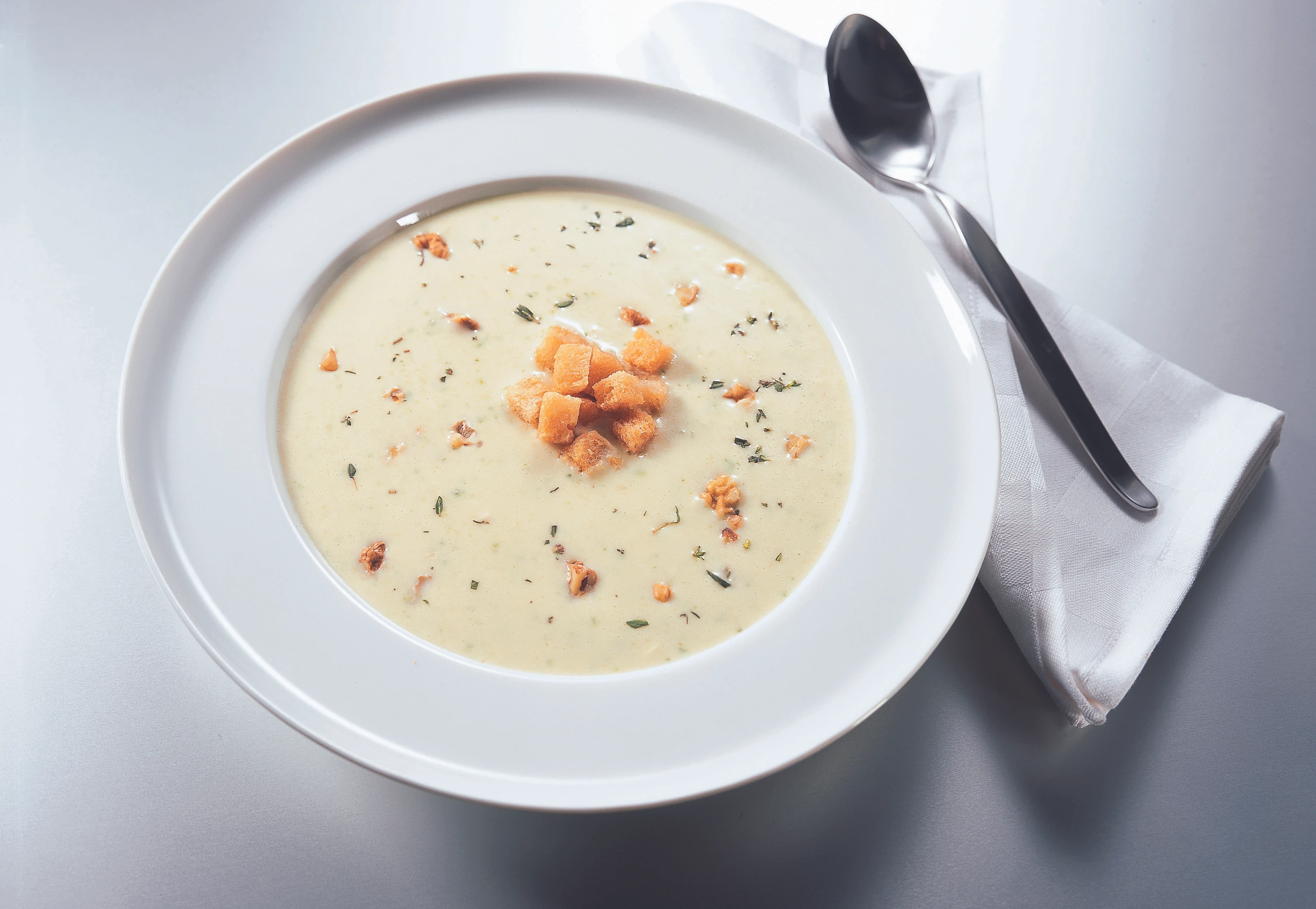 Suppe mit Salz, Pfeffer, zerdrücktem Knoblauch und Zitronensaft würzen, vom Herd nehmen und mit einem Stabmixer pürieren. Zucchini und Thymian einrühren und die Suppe nochmals kurz aufkochen. Suppe in vorgewärmte Teller schöpfen und mit Nüssen und Brotstücken bestreut servieren.