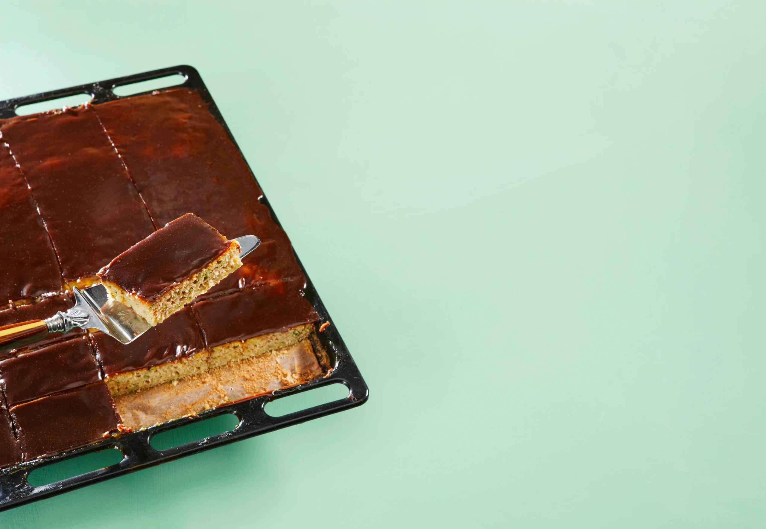 Kuchenmasse auf dem Blech verstreichen und im Rohr (mittlere Schiene) ca. 20 Minuten backen. Kuchen aus dem Rohr nehmen und auskühlen lassen (ca. 1 Stunde).