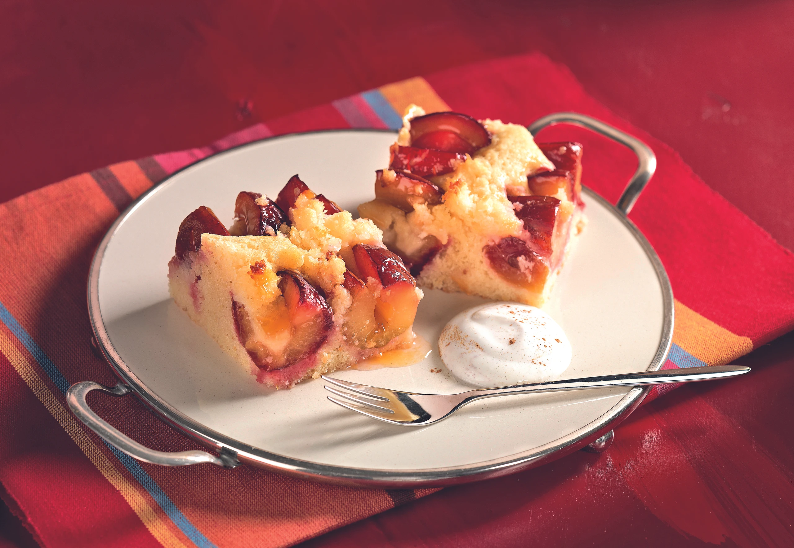 Für den Belag Zwetschken halbieren, dabei aber nicht ganz durchschneiden, und entkernen. Fruchtfleisch mehrmals einschneiden. Milch, Obers, Ei und Kokosette verquirlen.