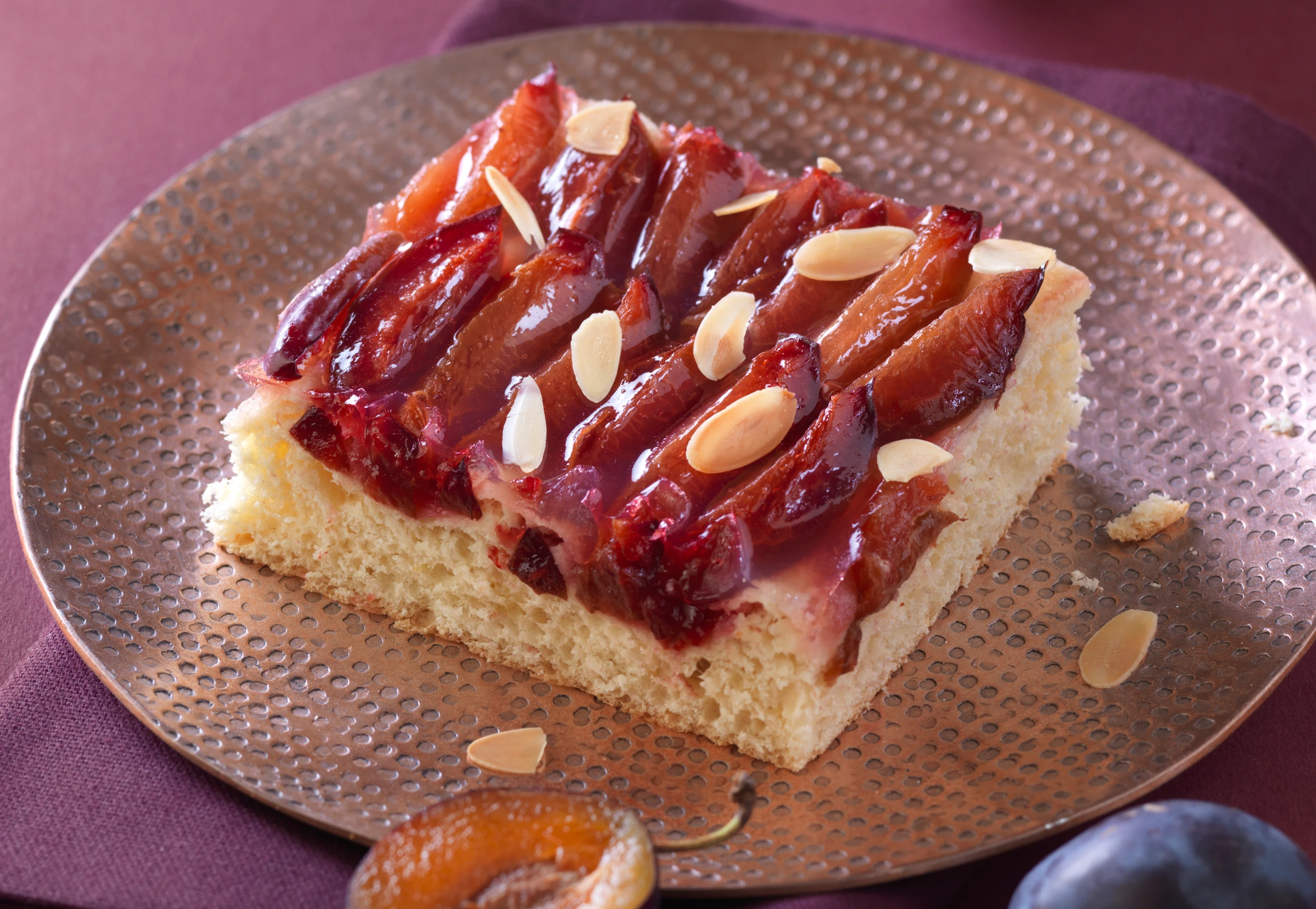 Für den Teig Germ zerbröseln und mit Mehl, Zucker, Vanillezucker und Zitronenschale vermengen. Milch erwärmen, vom Herd nehmen und mit Ei, Dotter, Rum und 1 Prise Salz vermischen. Milch und Butter zur Mehlmischung geben und zu einem glatten Teig verkneten (dauert ca. 5 Minuten). Teig in Frischhaltefolie wickeln und ca. 20 Minuten rasten lassen. Für den Belag Zwetschken entkernen und in Spalten schneiden.
