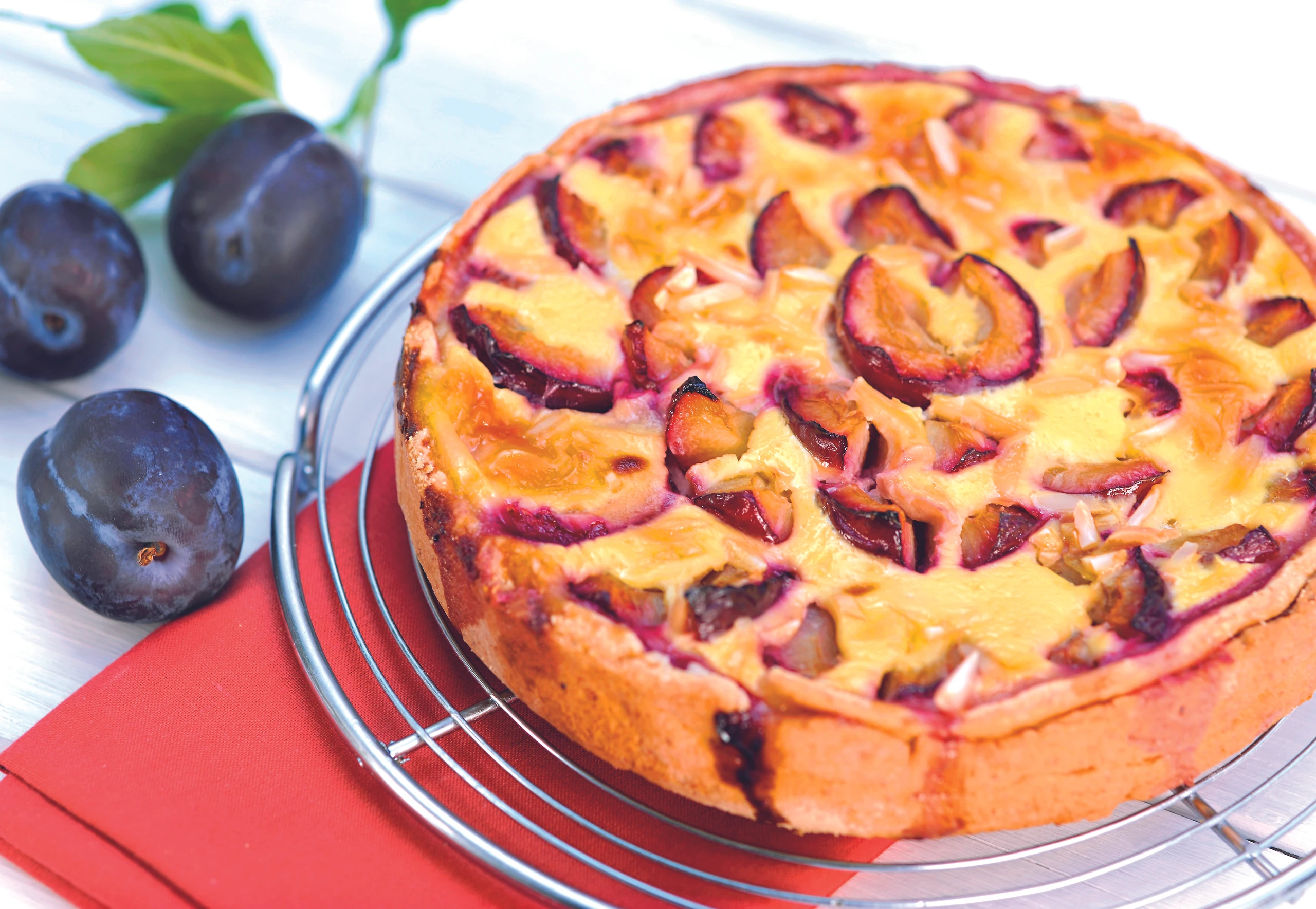 Eine Tarteform (Ø 24 cm) mit Butter ausstreichen. Teig ausrollen, Boden und Rand der Form damit auslegen. Kuchenboden mit Semmelbröseln bestreuen und mit Zwetschken belegen (Schnittflächen oben).