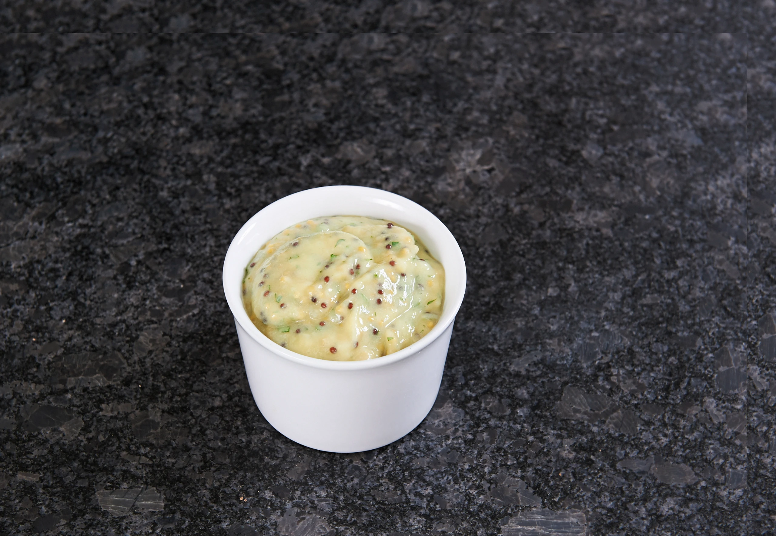 - Mischung umfüllen, auskühlen lassen, mit Senf und Thymian verrühren, salzen und pfeffern.
