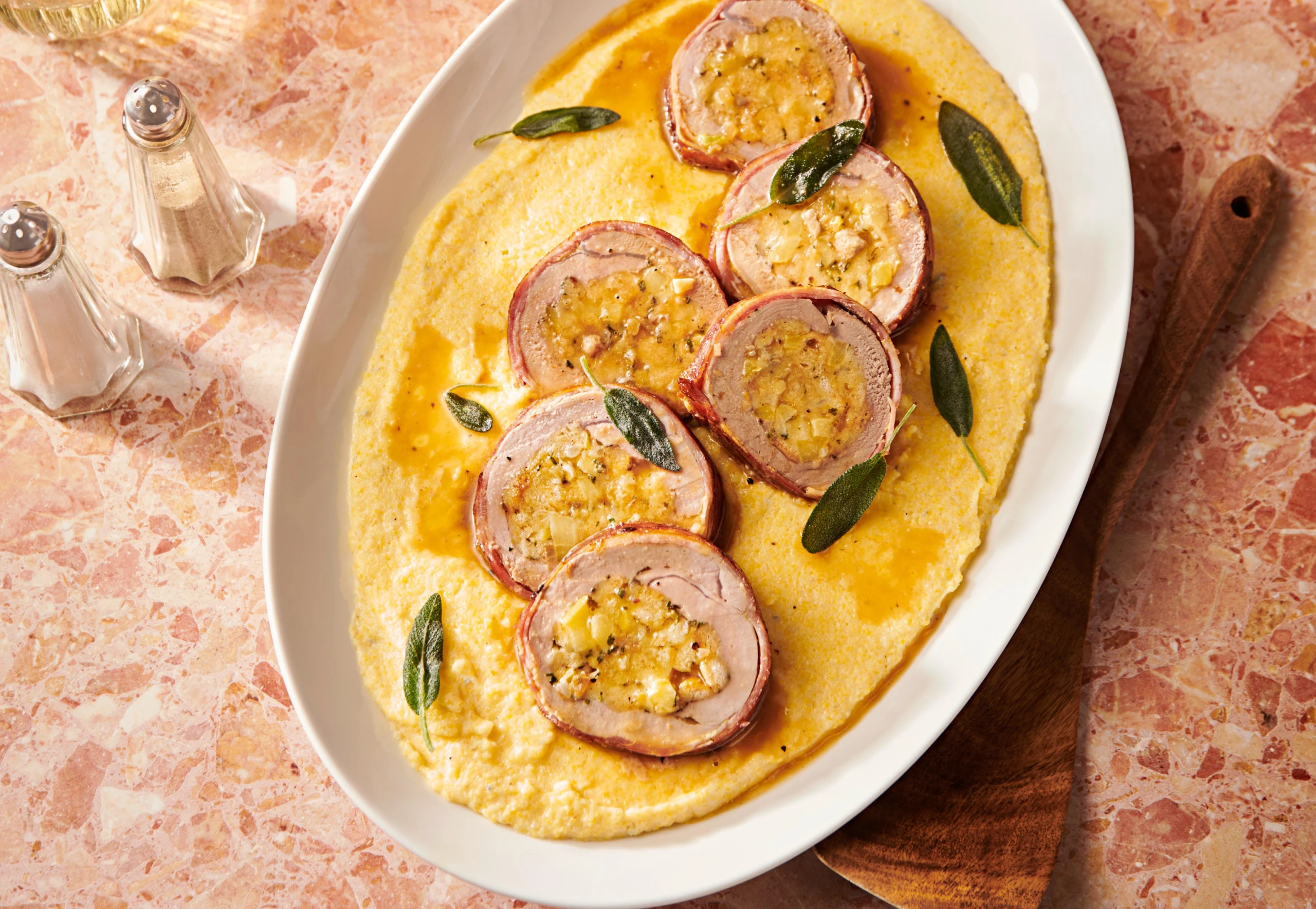 Gefüllter Schweinslungenbraten mit Gorgonzola-Polenta